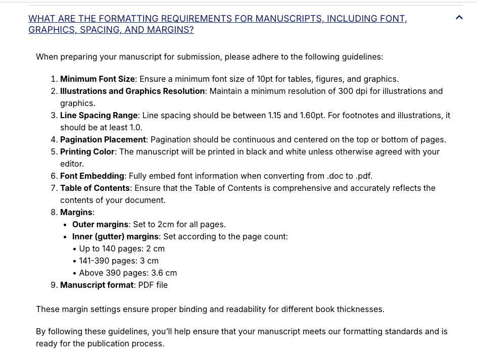 If you answered “no” to any of the statements above, it may be worth reviewing the publisher’s formatting and submission guidelines more carefully, strengthening your manuscript’s structure and consistency, and considering professional proofreading before submitting your work for book publication.